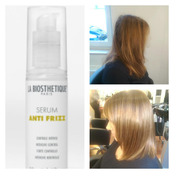 Ein Glossing zauberte der Kundin ein unübertroffenen, gesunden und edlen Glanz, der jedes Haar erstrahlen lässt. Und das Anti Frizz Serum bringt widerspenstiges Haar unter Kontrolle.